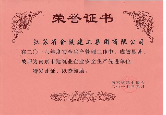 2016年度南京市建筑業(yè)企業(yè)安全生產(chǎn)先進(jìn)單位