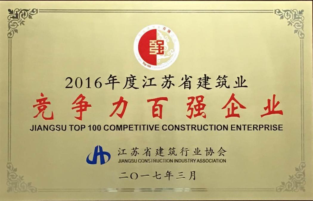 2016年度江蘇省建筑業(yè)競爭力百強