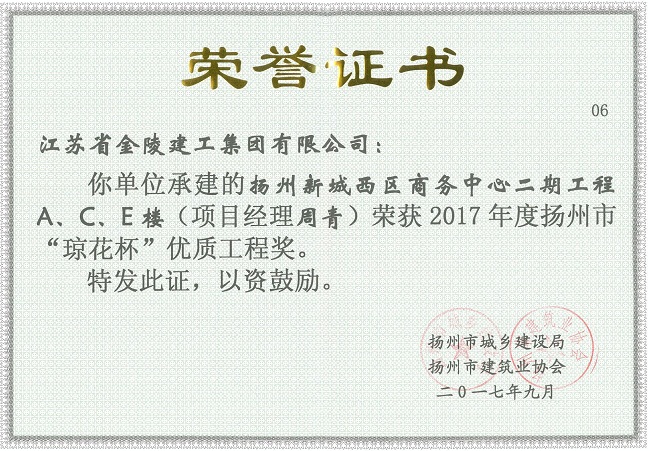 揚州市“瓊花杯”優(yōu)質(zhì)工程獎