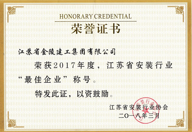 2017年度江蘇安裝行業(yè)協(xié)會“最佳企業(yè)”