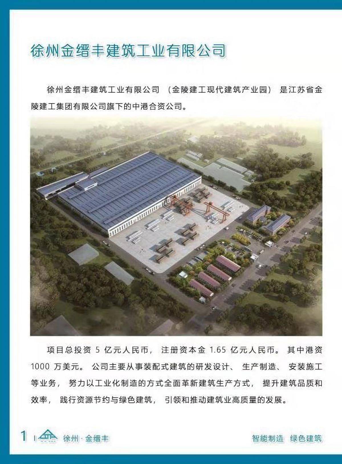 徐州金縉豐建筑工業(yè)有限公司(金陵建工現(xiàn)代建筑產(chǎn)業(yè)園)是江蘇省金陵建工集團有限公司旗下的中港合資公司。公司注冊資金1.65億元人民幣。其中外資1000萬美元。公司將充分發(fā)揮金陵建工集團研發(fā)、設(shè)計、生產(chǎn)、施工、投資一體化的優(yōu)勢,努力以工業(yè)化制造的方式全面革新建筑生產(chǎn)方式,提升建筑品質(zhì)和效率,踐行資源節(jié)約與綠色建筑,引領(lǐng)和推動建筑業(yè)高質(zhì)量的發(fā)展。